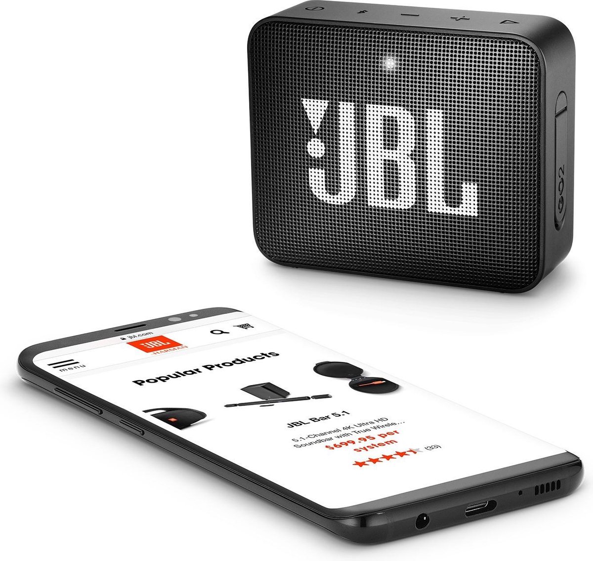 - Superveilige IPX7-bescherming biedt de JBL GO 2 ondoordringbare bescherming