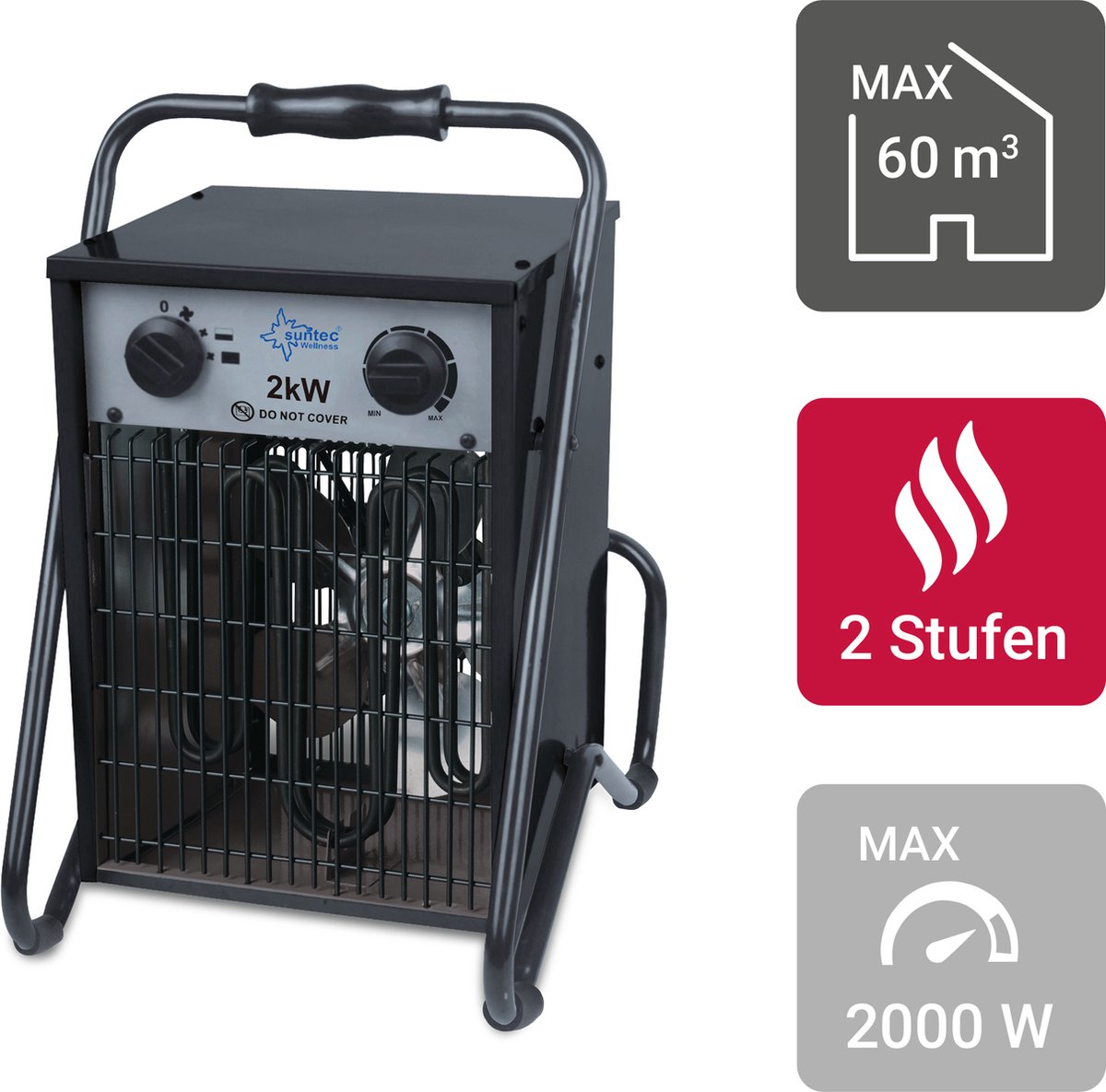 SUNTEC Heat Cannon 2000 – Industriële Ventilatorkachel (IP24) – 2000 Watt + Ventilator (25 Watt) – Bijzonder grote warmteafgifte – Robuuste metalen behuizing