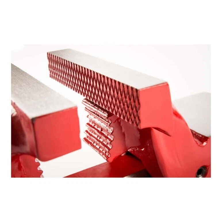 De schroefbank is afgewerkt met een rode poedercoating voor extra bescherming tegen slijtage en corrosie. Dankzij het meegeleverde bevestigingsmateriaal is montage op de werkbank eenvoudig en snel.