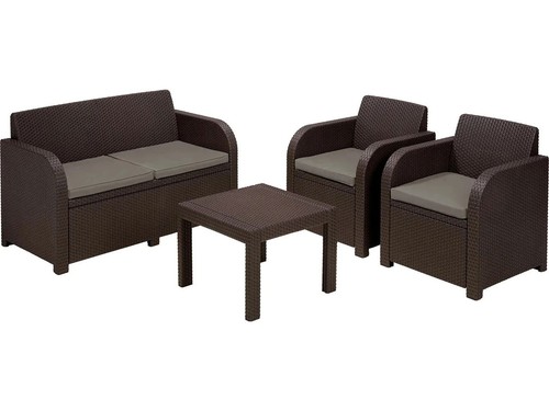Creëer een gezellige en comfortabele zithoek in je tuin, op je terras of balkon met deze stijlvolle 3-delige tuin loungeset in een warme bruine kleur. De set bestaat uit een ruime tweezitsbank, een comfortabele stoel en een praktische tafel, waardoor je eenvoudig een fijne plek maakt om te ontspannen in de buitenlucht.