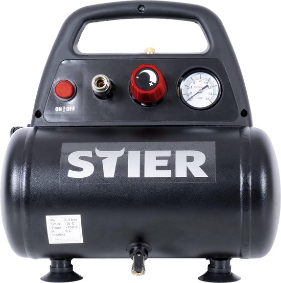 Het compacte formaat van de STIER Compressor MKT 215-8-6 maakt hem gemakkelijk te vervoeren en op te bergen, waardoor hij perfect is voor zowel mobiele toepassingen als voor werkplaatsen met beperkte ruimte. De betrouwbaarheid en efficiëntie van deze compressor maken hem een waardevolle toevoeging aan elke toolkit, zowel voor professioneel als persoonlijk gebruik.